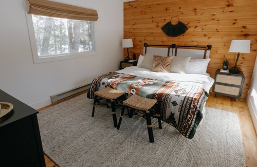 En esta casa de campo que acepta mascotas podrás disfrutar de descensos en trineo, del patinaje sobre hielo y de mucho más a muy poca distancia. El alojamiento dispone de un aparcamiento en las instalaciones. Además, estarás a 10min en coche de The Ridge Golf Club y a 38min en coche de Punto de acceso al lago Kawawaymog.