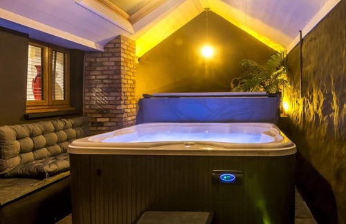 Relájate en el jardín o tómate algo en la bañera de hidromasaje de esta casa de vacaciones de 102 m² que, además, cuenta con un porche o patio. En cuanto al interior, puedes disfrutar del wifi gratis y de la televisión.