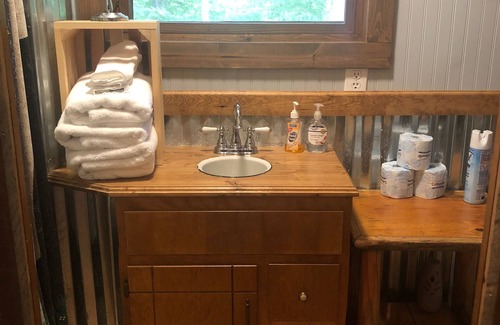 Disfrute de los beneficios relajantes del aire fresco y fresco de Blue Ridge Mountain mientras descansa en un entorno boscoso con un arroyo. El Old Homeplace Cottages está convenientemente ubicado a solo 8 km del centro de Hendersonville o del Historic Flat Rock Playhouse.