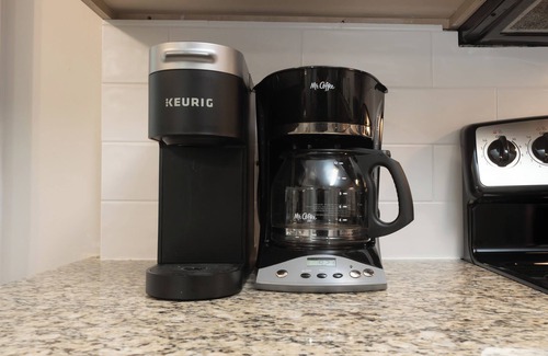 - Fully equipped kitchen with all the essentials (including Keurig & drip coffee makers, blender, toaster oven, crockpot & more!)