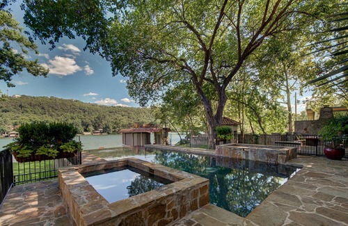 ¡Quédate en el hermoso lago Austin con estilo! Esta magnífica finca de 6000 pies cuadrados lo tiene todo. Piscina infinita, bañera de hidromasaje, muelle en la azotea en el agua, ¡y mucho más!