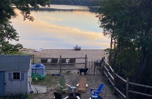 Cape Cod, propiedad erosionada, teja, frente a la playa. Ubicado frente a la playa en el hermoso estanque Jenkins. Camina desde el patio trasero directamente a la playa de arena. (este es un estanque de agua dulce) ¡Gran playa para nadar, windsurf, piragüismo y pesca!