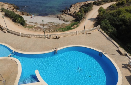 .Piscina frente al mar para adultos y niños con salida directa a playa y a camino costero.Urbanización a tan solo 2 kms del centro urbano de Peñíscola.En los meses de verano hay autobús con parada a la salida.