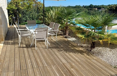 Casa de vacaciones en Cuzance con piscina privada y cocina