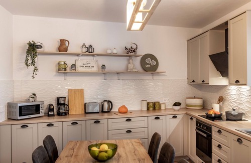 Este alojamiento de 3 dormitorios y 1 baño cuenta con una zona para barbacoas y chimenea. El cuarto de baño incluye un secador de pelo y toallas. La cocina está equipada con horno, placa de cocina y frigorífico, además de cafetera y tetera, microondas y utensilios de cocina. Y como hay acceso a una lavandería, no necesitarás llevarte mucho equipaje.