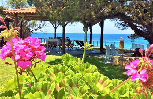 El complejo ofrece tres apartamentos vacacionales independientes y independientes, cada uno con su propia terraza frente al mar, con agradable privacidad. Usted pasa a través del área verde del jardín directamente a la playa privada que pertenece al complejo, que se comparte solo con los huéspedes que se alojan en los tres apartamentos.