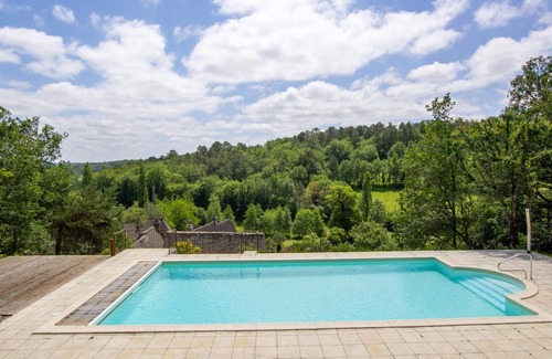 Independent house opposite the owner's house, not overlooked. On the ground floor, a PMR bedroom with a 140 bed with a private bathroom with walk-in shower, shower chair, grab bar, WC. From the entrance hall, you have a separate PMR WC with grab bar and washbasin and a laundry room equipped with a washing machine, dryer. Beautiful living room of 100m2 with a kitchen (dishwasher, oven, microwave, gas and induction), TV, armchairs, sofas, tuned piano. Upstairs, you will have access to the 3 bedrooms. They all have a 160 cm modular bed into 2 80 cm beds, a separate but private bathroom with shower and WC. Swimming pool shared with the owner, accessible (50m) by a path in the woods at height, depth 1.10 to 1.50, dimensions 6x12 with ozone, secured by a roller shutter open and heated from mid-May to the end of September. Terrace, plancha, garden furniture. Parking on site, 1 private PMR. Travelers will be able to enjoy moments of tranquility while being close to the renowned tourist sites of the Dordogne. The location is ideal for exploring the Périgord heritage: only 10 minutes by car from the International Center for Parietal Art Lascaux 4 and 24 km from the medieval city of Sarlat. The local markets will be numerous choose the one you will discover.