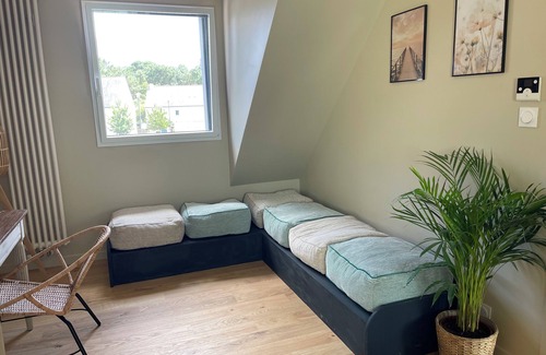 Located in Belz, this 3-bedroom, 2-bathroom vacation home lets you experience it all. Fans of nature and the outdoors will love being 4 minutes by car from Saint-Cado and 6 minutes from Bay of Biscay. Make short work of the 8-minute drive to Plage des Enfants or the 11-minute drive to Kerminihy.