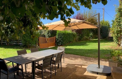 This cottage has a garage, a courtyard and an enclosed plot of land with garden furniture and barbecue.