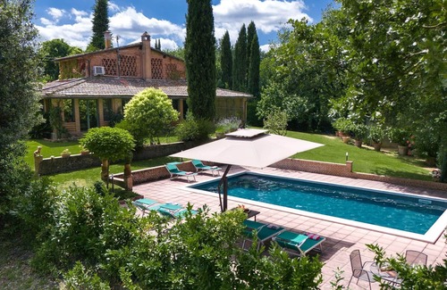Hay algo especial en esta hermosa propiedad, que se encuentra en el borde del Chianti con fácil acceso a las ciudades de Florencia, Siena y Arezzo. ¿Quizás son las bonitas terrazas sombreadas de vid, el gran jardín con césped y la gran piscina privada ...? O bien, podría ser la sensación de cabaña de los propios edificios: las bonitas persianas de los grandes ventanales y la cálida atmósfera creada en su interior. Sea lo que sea que sientas, tu grupo adorará esta cómoda villa y granero convertido.