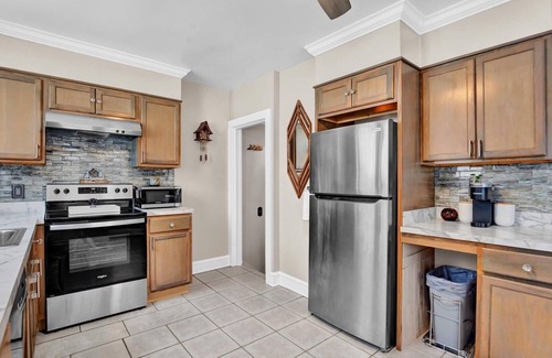 Este alojamiento de 1 dormitorio y 2 baños cuenta con aire acondicionado y oficinas. El cuarto de baño incluye un secador de pelo y toallas. La cocina está equipada con horno, placa de cocina y frigorífico, además de cafetera y tetera, máquina de hielo y microondas. Y como hay acceso a una lavandería, no necesitarás llevarte mucho equipaje.