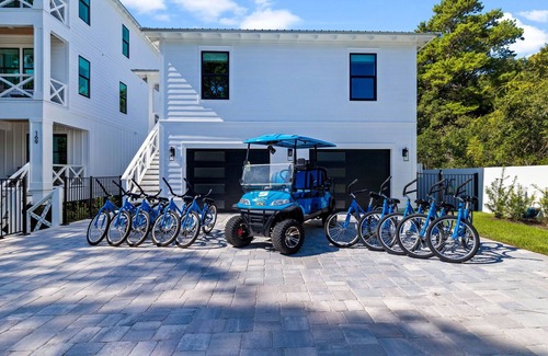 Golf Cart+10 Bikes! 5-Min Walk to Beach! Pool+Spa (Heatable) 8 Bed+Carriage Home | Villa en Santa Rosa Beach