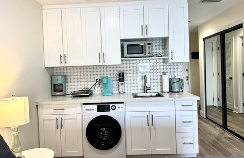Al instalarte en este alojamiento de 1 dormitorio y 1 baño, encontrarás aire acondicionado y escritorio. El cuarto de baño incluye un secador de pelo y toallas. La cocina está equipada con frigorífico, además de cafetera y tetera, máquina de hielo y microondas. Y gracias a la lavadora y la secadora, podrás viajar con poco equipaje.