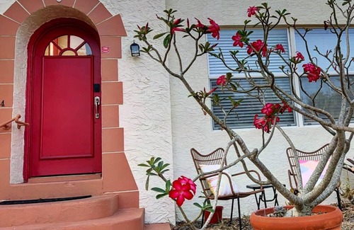 Se cobra un cargo por servicio y los impuestos a las ventas / resort del Condado de Brevard, además de la tarifa por noche. El exterior del edificio está controlado por vigilancia las 24 horas, que nunca hemos tenido que usar, pero agrega un nivel adicional de seguridad. Hay un tren que atraviesa el centro de Melbourne y puede escucharse a última hora de la tarde y temprano por la mañana. Hay un ventilador de piso disponible en la unidad si se necesita ruido blanco para quienes tienen el sueño ligero. Hay cuatro unidades de un dormitorio en el edificio; de vez en cuando puede escuchar a otros invitados Aunque solo está a un par de cuadras del centro, la calle es residencial, así que respete las horas de silencio. Estacionamiento en la calle para un vehículo / unidad detrás de la casa está disponible. Cuidado, el arco sobre el camino de entrada es estrecho. Una furgoneta o un SUV está bien, pero por favor vaya muy lentamente debajo del arco; Es posible que necesite doblar en los espejos. El estacionamiento en la calle adicional para un segundo vehículo o camiones / camionetas más grandes está disponible en el otro lado de la calle.