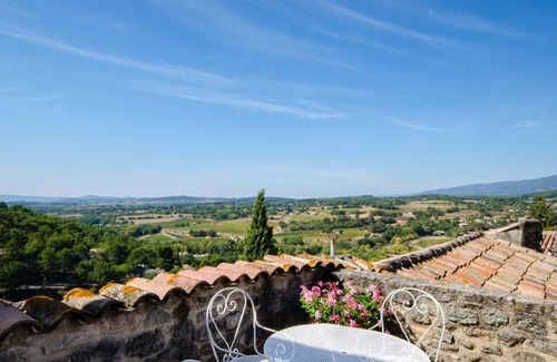 Una gran casa renacentista en el centro del pueblo de Grambois, esta habría sido la casa más importante del pueblo, y fue construida alrededor de 1700 por Lord Roquesante, con algunas partes que datan de los años 1300. La casa está distribuida en 4 plantas, todas con vistas al campo, e incluye una terraza con una vista panorámica de 360 grados de la Provenza. Ha sido restaurado por expertos con precisión histórica, con puertas y chimeneas originales, y tiene el ambiente de vivir en un pequeño castillo. En realidad, hay dos cocinas, una en la planta baja junto al comedor y el balcón, y otra en el piso superior junto a la terraza superior, para que pueda elegir. y no tendrá que caminar lejos para servir una comida.