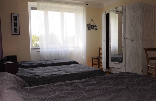 1 dormitorio con 3 camas de 90, 1 dormitorio con una cama de 160, un baño con cabina de ducha y WC separado.