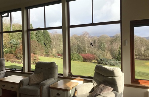 Nuestra casa está convenientemente ubicada a menos de media milla a las afueras de Crieff y está situada en una zona tranquila que ofrece excelentes vistas del campo y también de la ciudad de Crieff. Encontrará la casa extremadamente espaciosa tanto por dentro como por fuera, con estacionamiento para varios autos y también un garaje doble que se puede utilizar. Hay un fuego abierto y proporcionamos toda la madera que necesitará, incluso durante el clima más frío.