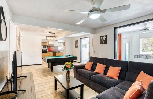 • Una amplia casa equipada con una sala de juegos con billar y futbolín, además de un jacuzzi privado y una oficina.