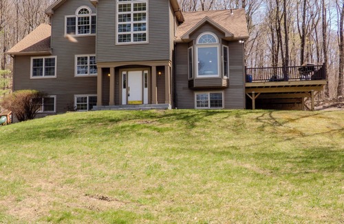 Todas las habitaciones tienen colchones pillow-top, almohadas, edredones y sábanas suaves de lujo. Al entrar en la casa de la planta principal es la mitad de un vuelo y el primer piso es la mitad de un vuelo hacia abajo. La planta principal tiene tres dormitorios, baño, salón, comedor, cocina. La primera planta dispone de otra sala de estar con sofá-cama, dormitorio, cocina y baño. El segundo piso de la casa en la que se encuentra el dormitorio principal con baño privado y un dormitorio adicional. Hay hermosas vistas de la naturaleza desde todas las habitaciones y la gran ventana de la cocina de la bahía con vistas al jardín privado y la primavera estanque alimentado. Tenemos una sala de juegos con air hockey, ping pong, dardos magnéticos, y juegos de mesa. Hay una línea de cremallera en el patio lateral y un parque infantil en la parte posterior. La casa se encuentra en una colina, entorno perfecto para pasear en trineo en el invierno y para el patinaje de hielo cuando el estanque se congele.