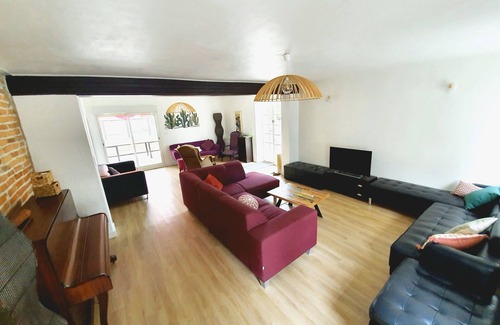 Esta casa de vacaciones de 9 dormitorios y 5 baños está ubicado en Orx, una ubicación ideal para explorar los alrededores. A los amantes de la naturaleza y el aire libre les encantará estar a 14min en coche de Golfo de Vizcaya y a 27min de Playa de Hossegor. Puedes conducir 19min hasta Playa de Ondres o 14min hasta Búnkeres de Capbreton.