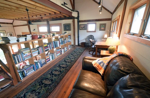 Esta es la escapada ideal para un fin de semana o unas pocas semanas. Usted no verá ningún vecinos, despierta al sol que se levanta sobre los campos que ruedan, sorbe su café en la tabla en el balcón - con las grandes vistas a los alrededores 100 acres - relájese en el sofá acogedor y (en un día frío ) Mirar el fuego rugiendo en la estufa de leña (leña ilimitada proporcionada gratis), tomar un descanso para ver los pájaros de la enorme pared de las ventanas, pasar un par de horas de navegar por la biblioteca en el segundo nivel, donde encontrará Todas las clases de grandes libros, después pop un DVD en el jugador abajo y mirar una película clásica - seleccionada de la selección grande del DVD de la casa - o secuencia una película del wi-fi libre. Y, si quieres un poco de ejercicio, camina por los terrenos, donde encontrará todo tipo de tesoros naturales: una enorme variedad de flores y plantas y algunos árboles viejos de proporciones históricas, incluyendo uno de los árboles de haya más grandes del estado.