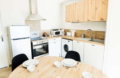 Aprovecha para preparar una comida casera: dispones de horno, placa de cocina, lavavajillas y microondas. El cuarto de baño incluye toallas y papel higiénico. Y hay acceso a una lavandería, de modo que necesitarás poco equipaje. Otras comodidades incluyen ropa de cama, una tabla de planchar y calefacción.
