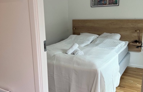A nice and spacious 1-bed apartment. Privately located in a newbuilt property completely secluded from the street. Private parking in the basement can be bought as an add-on. The apartment has a large, open kitchen and living room area, a good-sized bathroom with clothes washing facilities and a good-sized bedroom with a 140 cm continental bed. The apartment is fully furnished with nordic design furniture and fully equipped with all household electronics and kitchen equipment. There is regular cleaning and maintenance and a 24h support function, should you need assistance - no issue is too small.