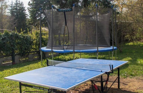 Relájate en el jardín o tómate algo en el porche o patio de este apartamento de 100 m² que, además, cuenta con una parrilla. En cuanto al interior, puedes poner a prueba tus habilidades jugando al futbolín y al tenis de mesa, o disfrutar del wifi gratis y de la televisión por satélite o cable.