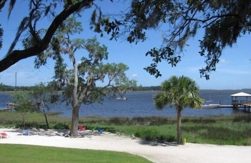 Salt Crest, ubicada a 35 minutos al sur de la histórica Savannah, Georgia, cuenta con esta cabaña frente al mar con un muelle compartido de aguas profundas en el río North Newport (también conocido como Half Moon River). Salt Crest es el refugio perfecto para un relajante fin de semana romántico, unas vacaciones con familiares y amigos o el destino ideal para el ávido pescador en alta mar y en la costa.