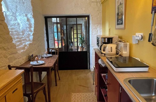 Esta hermosa habitación amueblada en la planta baja de un siglo XVII Logis.