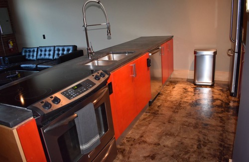 Tren de aterrizaje bloqueado, aleteando hacia abajo y luego un corto taxi a través del asfalto lo aterriza en uno de nuestros siete Hangar Lofts de 1,200 pies cuadrados para una noche para abrazar. Nuestros lofts tienen todos los diales e indicadores que esperaría en un paisaje urbano emergente que abarca desde paredes de ladrillo a la vista, vigas de acero estructural, pisos y encimeras de concreto hasta ventanas de vidrio de estilo comercial de gran tamaño para disfrutar de un patio privado. Los gabinetes personalizados de abedul báltico enmarcan la cocina moderna, que contiene la belleza suave de los electrodomésticos de acero inoxidable de Bosch. Los techos de 17 pies de altura están acentuados con conductos en espiral de aluminio a la vista colgados como telón de fondo a un techo hecho de tablas de machihembrado con acabado transparente. Estos lofts también contienen un montón de iluminación íntima diseñada para tu velada perfecta.