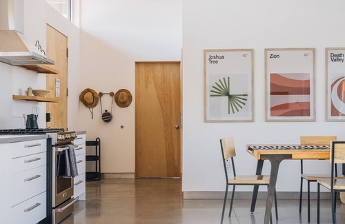 Hawk & Mesa tiene que ver con la ubicación serena y las impresionantes vistas. Esta casa moderna y cómoda diseñada por Jeremy Levine Design (www.jeremylevinedesign.com) con sede en Los Ángeles tiene dos habitaciones con colchones Saatva y sus propios baños en los extremos opuestos de la casa. La sala de estar se abre a enormes áreas exteriores para sentarse, cenar y observar las estrellas. ¡Todo ha sido equipado con amor para maximizar su disfrute!