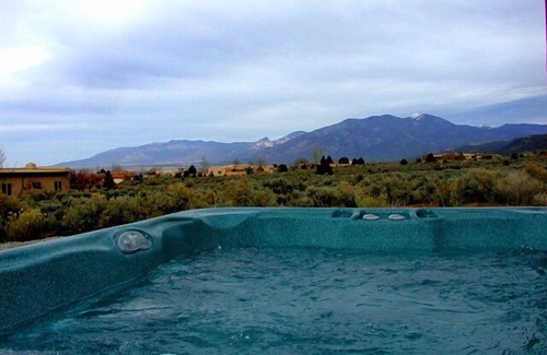 Heathers Hacienda 2 Town VIews CIty Lights Evap refrescante jacuzzi Se encuentra en Taos. Heathers Hacienda 2 Town VIews CIty Lights Evap refrescante jacuzzi ofrece alojamiento, con Entretenimiento, Bañera de hidromasaje, Internet, Entre otras comodidades. Estas características Casa Entretenimiento, Bañera de hidromasaje, Internet, Para que su estadía sea cómoda.