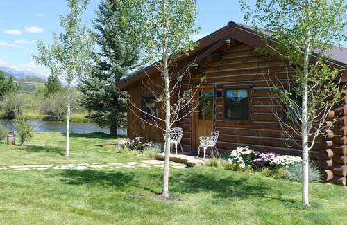 Histórica cabaña ubicada en las orillas de Fish Creek, restaurada con espléndidos detalles, cocina gourmet, pisos de madera e increíble trabajo de troncos. La configuración del dormitorio principal cuenta con una impresionante vista del arroyo y las montañas sin igual en todo Jackson Hole.