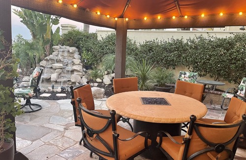 El colorido patio trasero (que significa muchas flores) cuenta con un spa cubierto / bañera de hidromasaje para seis personas, una parrilla de súper propano, una cascada de rocas y un amplio patio, algunos de los cuales están cubiertos, y una gran privacidad. Los amaneceres pueden ser espectaculares desde el patio orientado al este. También hay un patio delantero encantador que es ideal para sentarse y tomar una copa tranquila y privada por la tarde o un café temprano en la mañana.