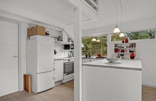 En Tranum, cerca de Jammerbay, se encuentra esta casa de vacaciones bien cuidada. Está situada en una gran parcela natural que linda con un bosque. En el interior encontrará habitaciones luminosas y amuebladas con cariño que causan una impresión de buen gusto. El corazón de la casa es la sala de estar abierta, donde pasará horas de sociabilidad con sus seres queridos. Póngase cómodo por las tardes en el rincón de los sofás mientras juega a juegos de mesa y caliéntese en las noches frescas frente a la chimenea mientras contempla el fuego.
