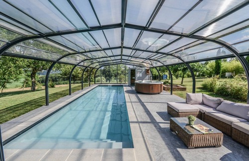 hermosa casa de 350m2, amplios espacios, piscina climatizada, jacuzzi, sauna | Cabaña en Grazac