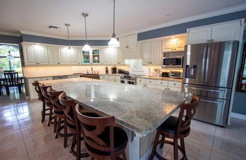 Esta casa de concepto abierto de Jensen Beach con un impresionante techo de 18 ’, una cocina grande, dos habitaciones familiares / excelentes, una gran piscina climatizada de 18’ X 38 ’, en un espacioso 1 acre. Esta es una casa de 4,400 pies cuadrados que tiene capacidad para 14 personas más. La casa tiene 6 habitaciones con 4 camas king y una mesa de billar en la sala abierta del segundo piso. La casa está ubicada en un lago con cancha de tenis en el desarrollo. A menos de 10 minutos de la playa del océano Atlántico (4 millas) y a 10 minutos del centro comercial Treasure Coast Mall y de numerosos restaurantes y tiendas. A 50 minutos de destinos populares como el centro de West Palm Beach, el Aeropuerto Internacional de Palm Beach y 2 horas de Disney y Orlando. Esta casa es ideal para grupos que desean compartir un lugar lleno de entretenimiento y actividades para todos. Y PET amigable.