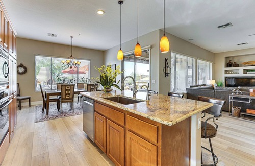 ¡Agregue un poco de lujo a sus próximas vacaciones en el desierto cuando se hospede en 'Anthem Oasis', una casa de alquiler de vacaciones de 3 habitaciones y 2. 5 baños! Ubicada en el hoyo 10 del campo de golf Persimmon, esta casa cuenta con 2,252 pies cuadrados y tiene capacidad para 8 personas. Le encantará pasar los días en el patio trasero con una piscina privada y una chimenea kiva al aire libre. Ya sea que elija jugar golf, ir de compras o realizar una caminata escénica, este hogar lejos del hogar estará esperando su regreso.