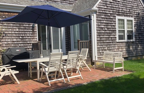 Encantadora casa en la sección Naushop de Nantucket. La casa ha sido recientemente redecorada por completo. Cuenta con 3 dormitorios, 2 baños completos, una acogedora sala de estar con chimenea de gas. La cocina totalmente equipada se come en. El Den es el lugar cómodo para ver la televisión. Un patio trasero de ladrillo tiene una mesa para su comedor al aire libre. También hay una parrilla de gas y una ducha exterior. Los jardines son ajardinados profesionalmente. Es el lugar perfecto para pasar sus vacaciones en Nantucket. El vecindario de Naushop tiene una piscina comunitaria, canchas de tenis y área de juegos para su uso.