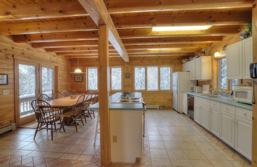 Cocina totalmente equipada con lavavajillas Microondas Mesa de comedor para seis, barra de cocina para cuatro Sala de estar con estufa de leña, ventanales con una gran vista y un sofá cama Teléfono Sala de estar en el sótano terminado con un sofá cama en el piso principal Dormitorio principal con King Full Bath Half Baño Segundo piso baño completo Dos dormitorios del segundo piso, uno con una reina y uno con dos camas individuales, el segundo con un doble y dos gemelos TV / VCR en el segundo piso de arriba. Doble futón en el segundo piso Abajo Lavadora / secadora 3/4 Baño Sala de estar Oficina Cubierta abierta con muebles de exterior Parrilla de carbón Muelle privado con escalera Kayak, canoa y bote de remos ¡No fumar, por favor! No se permiten mascotas