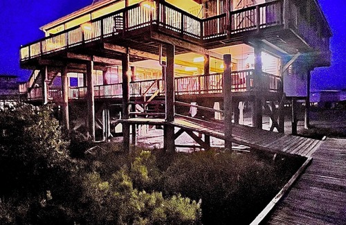Hermosa Casa Frente Grande en la bahía con muelle de pesca iluminado. | Casa en Grand Isle