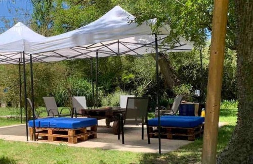 2 barbacoa de estilo tradicional uruguayo (interior y exterior), gran piscina (barbacoa cerca de la piscina), área de juegos al aire libre para niños, 1.5 acres de jardín con rosales y variedad de plantas, ubicada en zona de plantaciones de frutas, viñedos y bodegas que le permitirán disfrutar de la estadia.