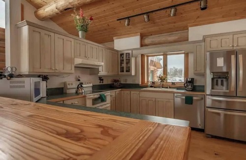 Esta hermosa cabaña de troncos se desborda con acabados de gama alta y madera natural y proporcionará un retiro familiar como ningún otro en Teton Valley. Cargado de entretenimiento para niños de todas las edades, un montón de espacio abierto, privacidad y vistas. Al ingresar a esta casa, se sentirá abrumado por el calor que los propietarios han diseñado para acomodar a sus hijos y ahora a sus nietos en este retiro occidental. Familias y grupos disfrutarán de las cuatro habitaciones privadas, todas con camas king size.