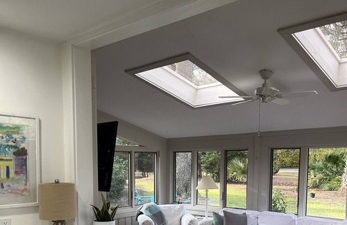 Nuestra villa está cerca de 2,000 pies cuadrados, 3 dormitorios, 3 baños en planta baja cerca del hoyo 4 del campo de golf Ocean. También hay un sendero para caminar / andar en bicicleta hacia el Centro de Golf Plantation, donde puedes jugar en el Ocean Course o Heron Point, y también cuenta con un campo de prácticas. Sea Pines tiene una excelente instalación de tenis a poca distancia en bicicleta, donde se encuentra la famosa academia de tenis Smith Sterns. También hay un gimnasio cerca.