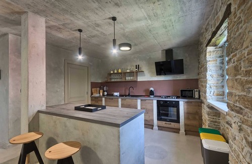 Si busca unas vacaciones tranquilas y lujosas , lejos de las multitudes y el bullicio de la ciudad, este es el lugar ideal . Esta villa recién decorada, ubicada en un pequeño pueblo del centro de Istria, tiene capacidad para 10+2 personas . La villa se distribuye en tres plantas . La planta baja consta de una piscina y una terraza . Sobre la piscina y el solárium cubierto, se encuentra una cocina exterior totalmente equipada con nevera , barbacoa y una mesa de comedor para 12 personas con vistas al hermoso paisaje . La planta central consta de una sala de estar , comedor y una cocina totalmente equipada , y en el mismo nivel, hay dos dormitorios con baños privados , además de un baño adicional . La planta superior consta de tres dormitorios con baños privados , dos de los tres dormitorios tienen un sofá adicional que puede servir como cama supletoria . Se admiten perros con un suplemento de 10 EUR/día/perro , a pagar a la llegada.