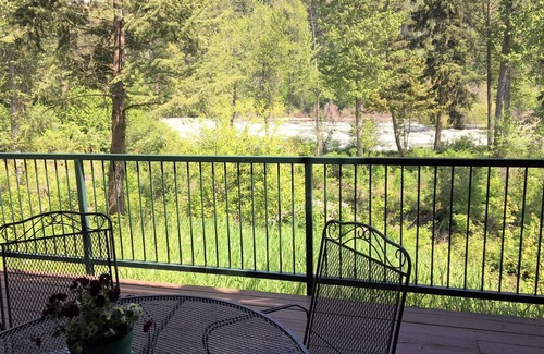 Nuevamente actualizado en 2017. Este hermoso condominio de vacaciones de un dormitorio Montana está situado en el corazón de Bigfork Village. Situado en 250 pies de la fachada del río Swan, este es un lugar único increíble. A una cuadra de restaurantes fabulosos, el Teatro Playhouse y tiendas. Esta es una activa y animada ubicación en el centro de Bigfork y cuenta con bares al aire libre y restaurantes con música en las noches de verano. Está a dos cuadras del muelle público en Flathead Lake. El Swan River Nature Trail comienza a 2 cuadras del condominio y el agua corriente del río Swan está justo al lado de la cubierta trasera.