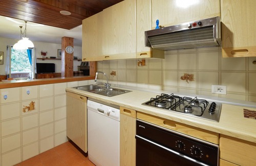 Su apartamento de vacaciones está idílicamente enclavado en el campo y ofrece una combinación ideal de encanto rústico y confort moderno. Póngase cómodo en el amplio salón con bonitos detalles de madera y relájese aquí después de un día explorando la región. Utiliza la cocina bien equipada para preparar tus comidas y disfrútalas en la acogedora mesa de comedor de madera, que también te invita a quedarte después.