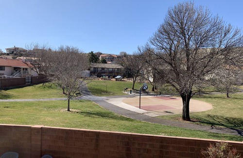 Este sótano tiene 1500 pies cuadrados y está amueblado con todo lo que necesita. Hay un sofá suave y cómodo para ver televisión, horno de tamaño completo, estufa, refrigerador y congelador. Hay un microondas por encima del rango para ventilación. Hay tres armarios, dos son grandes sin cita previa. Hay una despensa y estanterías para el almacenamiento de alimentos. La ducha tiene doble cabezal de ducha y mucha presión de agua. En el dormitorio principal hay una bonita chimenea decorativa con velas LED. Nuestra puerta trasera se abre a un gran y hermoso parque con un área de juegos para niños y un campo de golf de frisbee. Estamos a poca distancia de St. George campo de golf, cancha de tenis y senderos a lo largo del río. Estamos a unos 7 minutos en coche del hospital y a 10 minutos del centro. Vivimos en una calle sin salida tranquila y familiar.