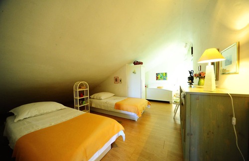 A staircase rises to the first floor which has two double bedrooms, a bathroom/toillet and children room with two beds. On the second floor are one king size bed and 2 single beds interconected.